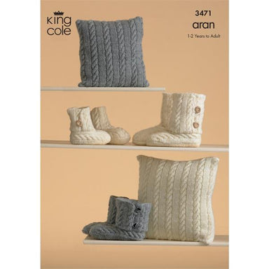 King Cole Pattern 3471 Knitted Slippers and Cushions in Fashion Aran