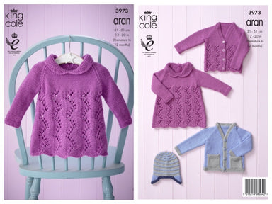 King Cole 3973 Baby Dress, Cardigans and Hat in Comfort Aran
