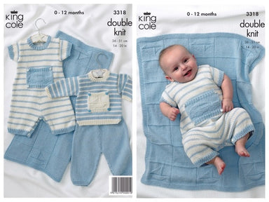 King Cole 3318 Baby "Little Boy Blue" Sweater, Pants, Romper and Blanket in Bamboo Cotton DK