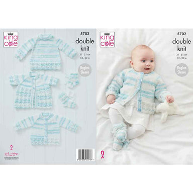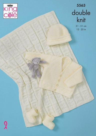 King Cole Pattern 6045 Jacket, Top, Hat, Socks & Blanket in Cosy Love Aran. Suitable for ages 3 months to 3 years