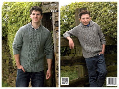 King Cole Pattern 3964 Boys and Mens Sweater and Hoodie in Aran