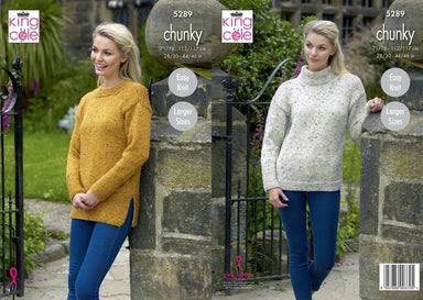 King Cole Pattern 5289 Knitting Pattern Womens Round and Funnel Neck Sweaters in King Cole Chunky Tweed