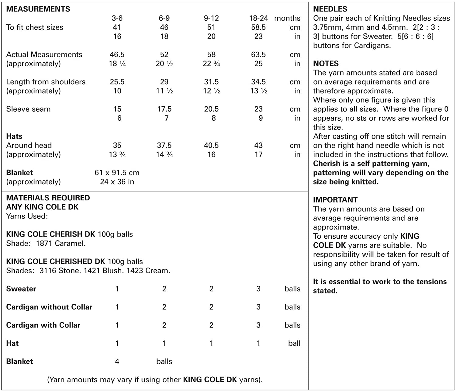 King Cole Pattern 5082 Blanket, Sweater, Cardigans and Hats in Cherish DK and Cherished DK