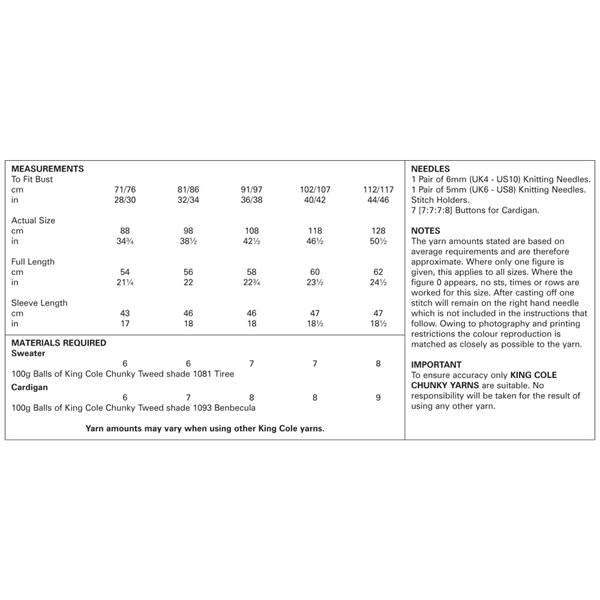 King Cole Pattern 5291 Sweater & cardigan in Chunky Tweed