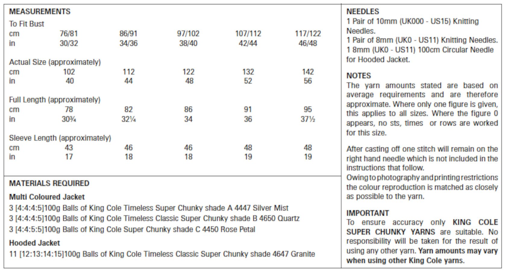 King Cole Pattern 5665 Jackets Knitted in Timeless Classic Super Chunky