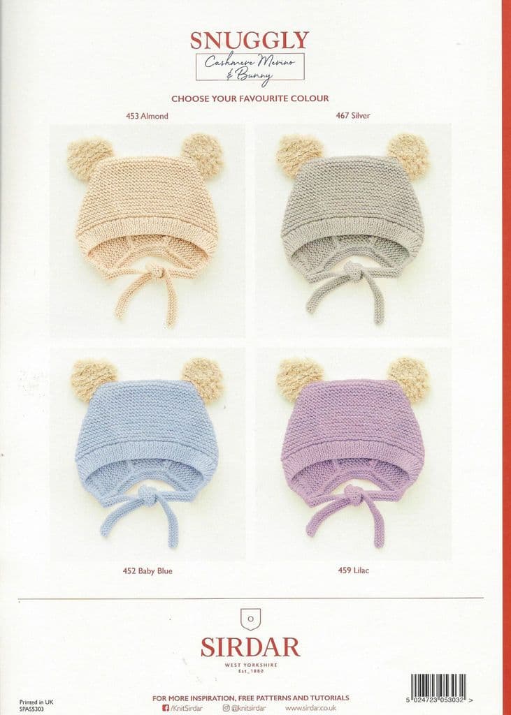 Zoom icon Click to expand Tap to zoom Chevron down icon Chevron down icon Sirdar Pattern 5303 Hats and Bootees in Snuggly Cashmere Merino DK and Snuggly Bunny Save 0% €4,50 | / Availability: Translation missing: en.general.icons.icon_check_circle icon Only 2 left! 1 2 3 4 5 6 7 8 9 10+ Quantity Chevron down icon Quantity Add to cart Spinner icon This item is a recurring or deferred purchase. By continuing, I agree to the cancellation policy and authorize you to charge my payment method at the prices, frequency and dates listed on this page until my order is fulfilled or I cancel, if permitted. Notify me when back in stock Email address Email me when available Sirdar Pattern 5303 Hats and Bootees in Snuggly Cashmere Merino DK and Snuggly Bunny