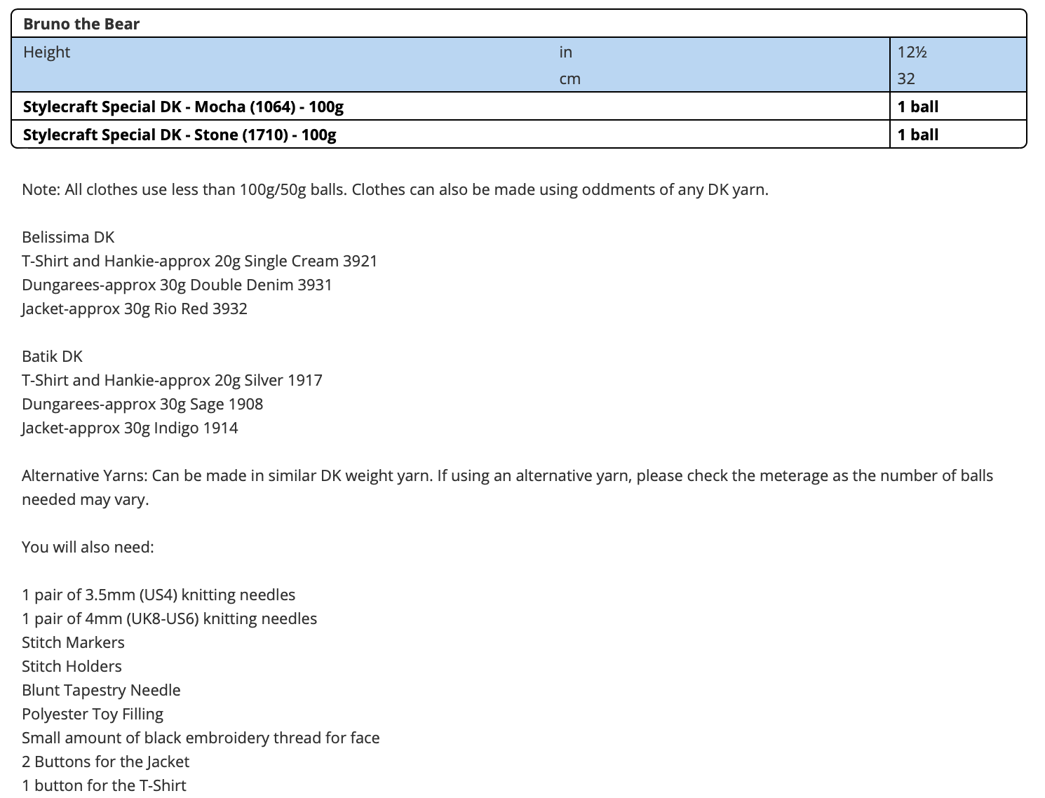 Zoom icon Click to expand Tap to zoom Chevron down icon Chevron down icon Stylecraft Pattern 9670 Bruno the Bear in DK Save 0% €4,50 | / Availability: Translation missing: en.general.icons.icon_check_circle icon Only 4 left! 1 2 3 4 5 6 7 8 9 10+ Quantity Chevron down icon Quantity Add to cart Spinner icon This item is a recurring or deferred purchase. By continuing, I agree to the cancellation policy and authorize you to charge my payment method at the prices, frequency and dates listed on this page until my order is fulfilled or I cancel, if permitted. Notify me when back in stock Email address Email me when available Stylecraft Knitting pattern 9670 Bruno the Bear in DK