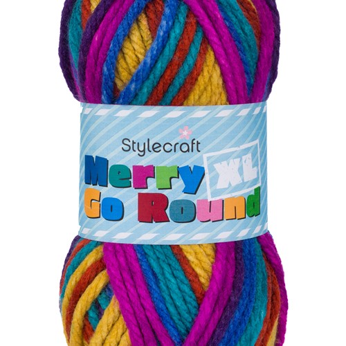 Have all the fun of the fair – now with even bigger thrills! Merry Go Round XL is a super chunky version of the original, super popular range, giving you garments that are just as exciting, with an extra layer of squishiness. Always a hit for a funky cardigan or jumper for the young ones, and with a selection eight powerful colour mixes to choose from, you're sure to find something to suit. Enjoy the ride!